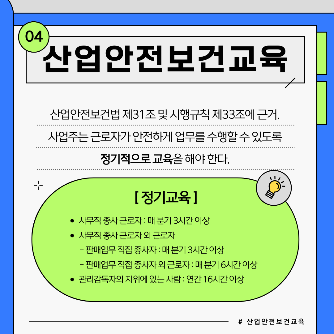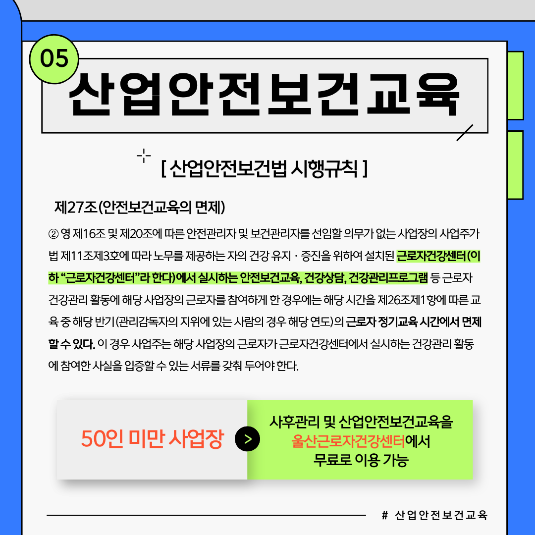 또한 근로자들은 안전보건교육을 이수함으로써 스스로 건강관리를 구축해 나갈 수 있습니다.