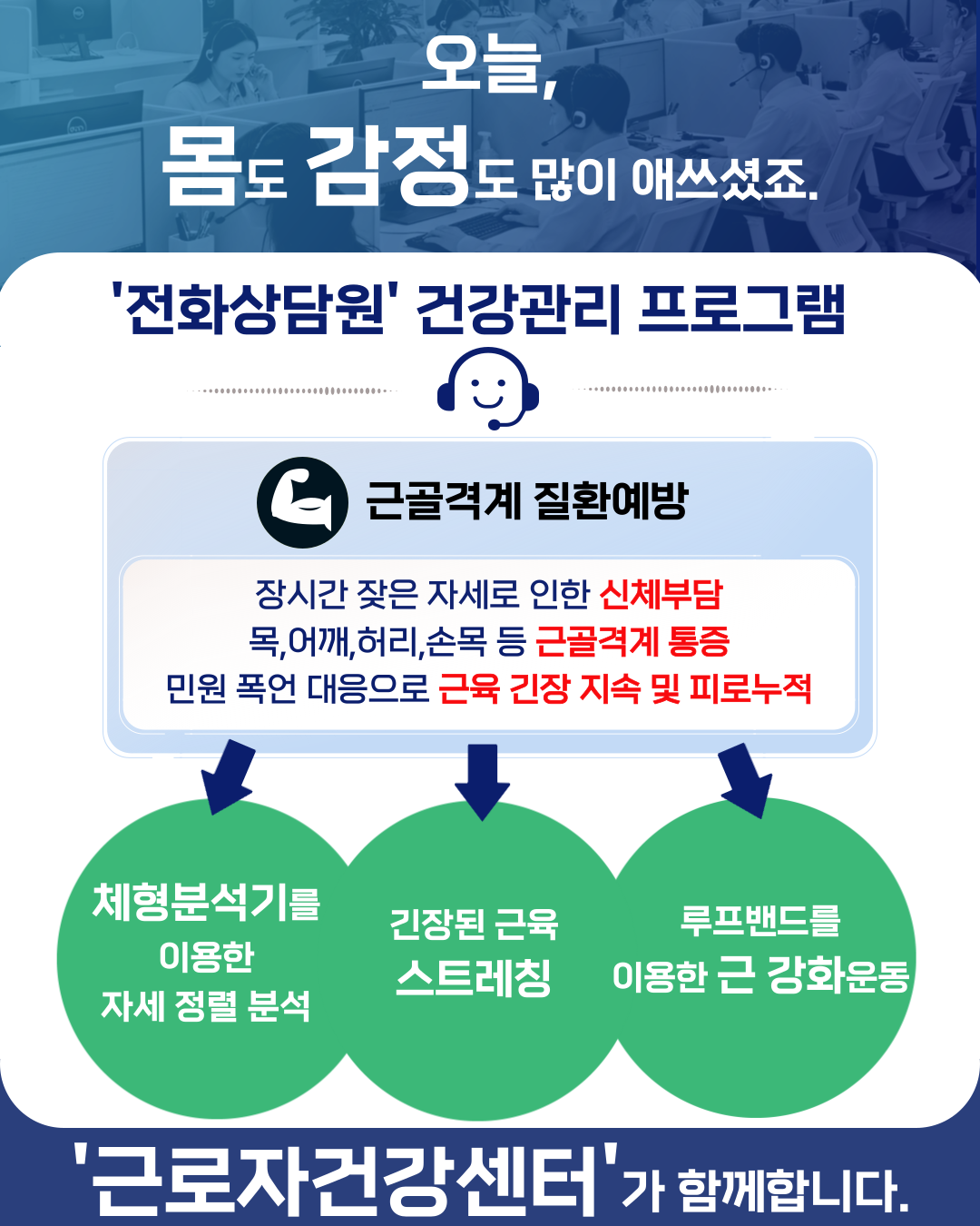 장시간 앉아서 일하는 전화상담원 분들을 위한 맞춤 건강 증진 프로그램으로