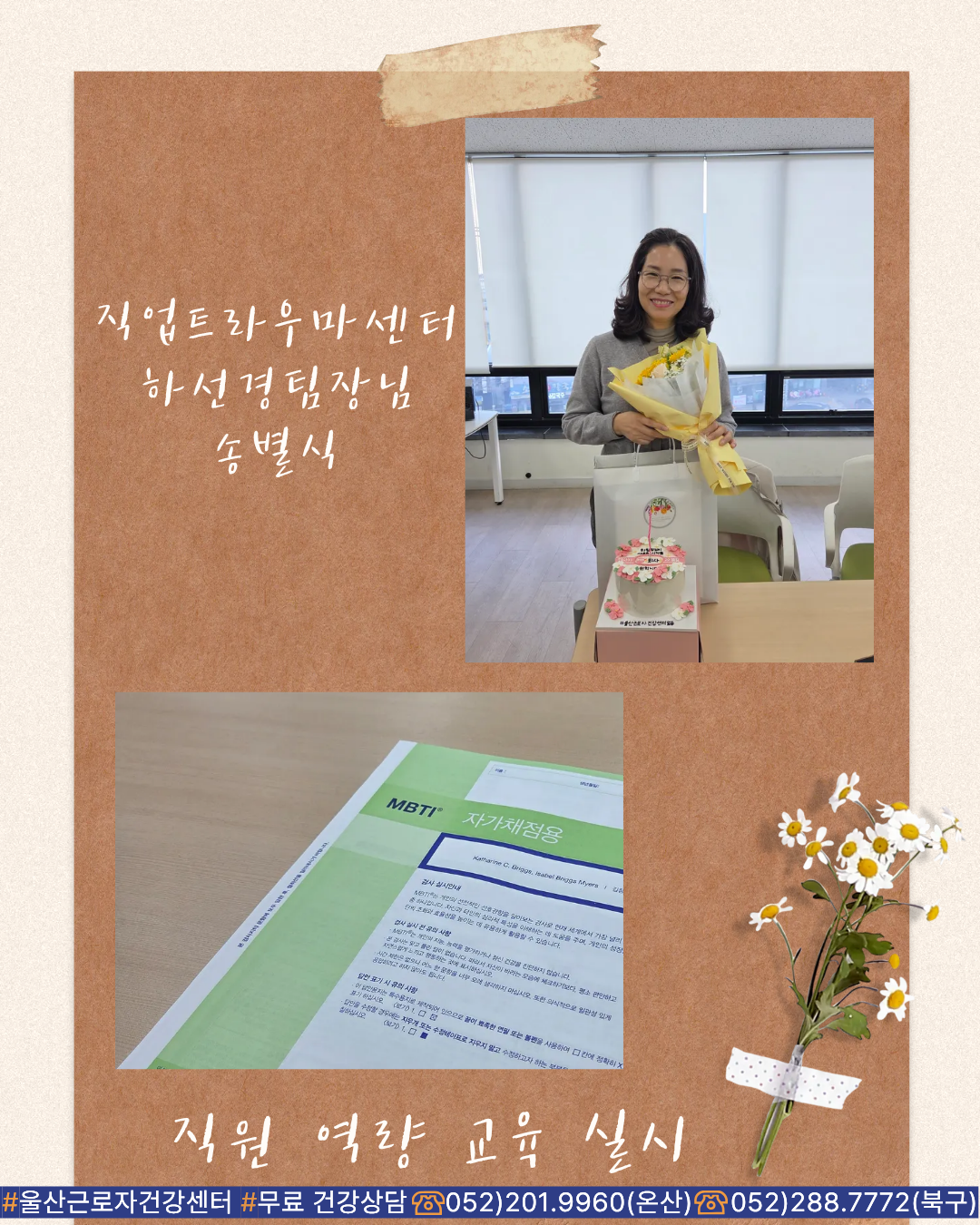 직업트라우마센터 하선경팀장님께서 이번년을 마지막으로 이별을 하게 되었는데요